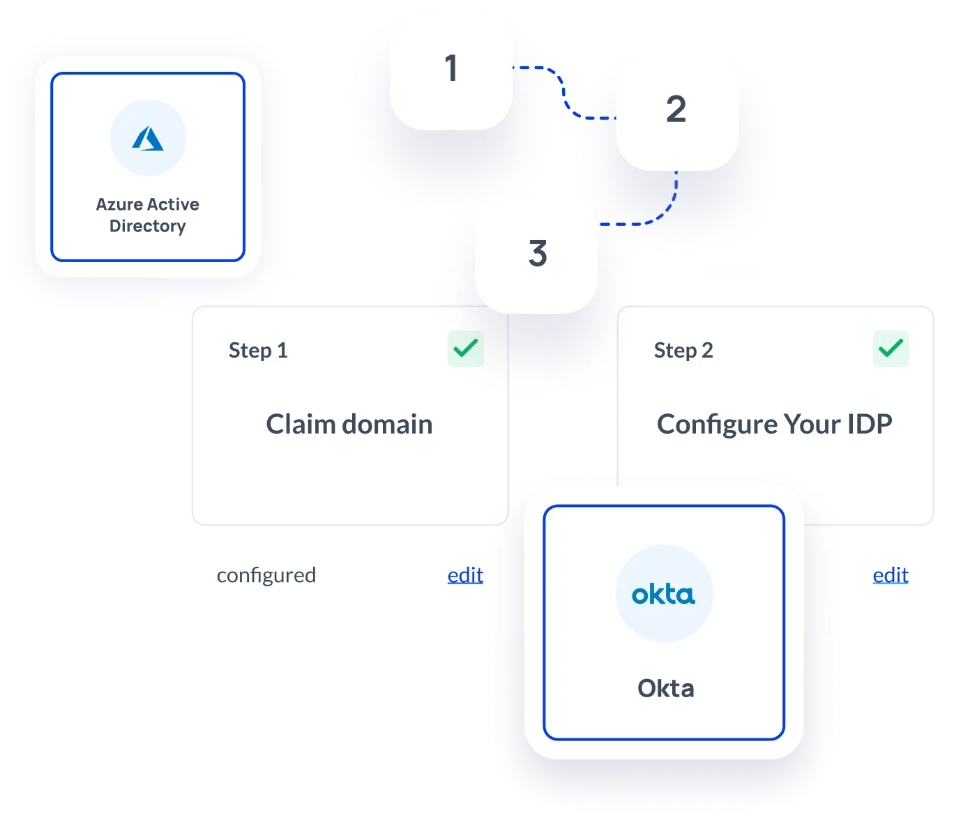 Add SSO to integrate with enterprise IDPs using protocols such as SAML and OIDC.