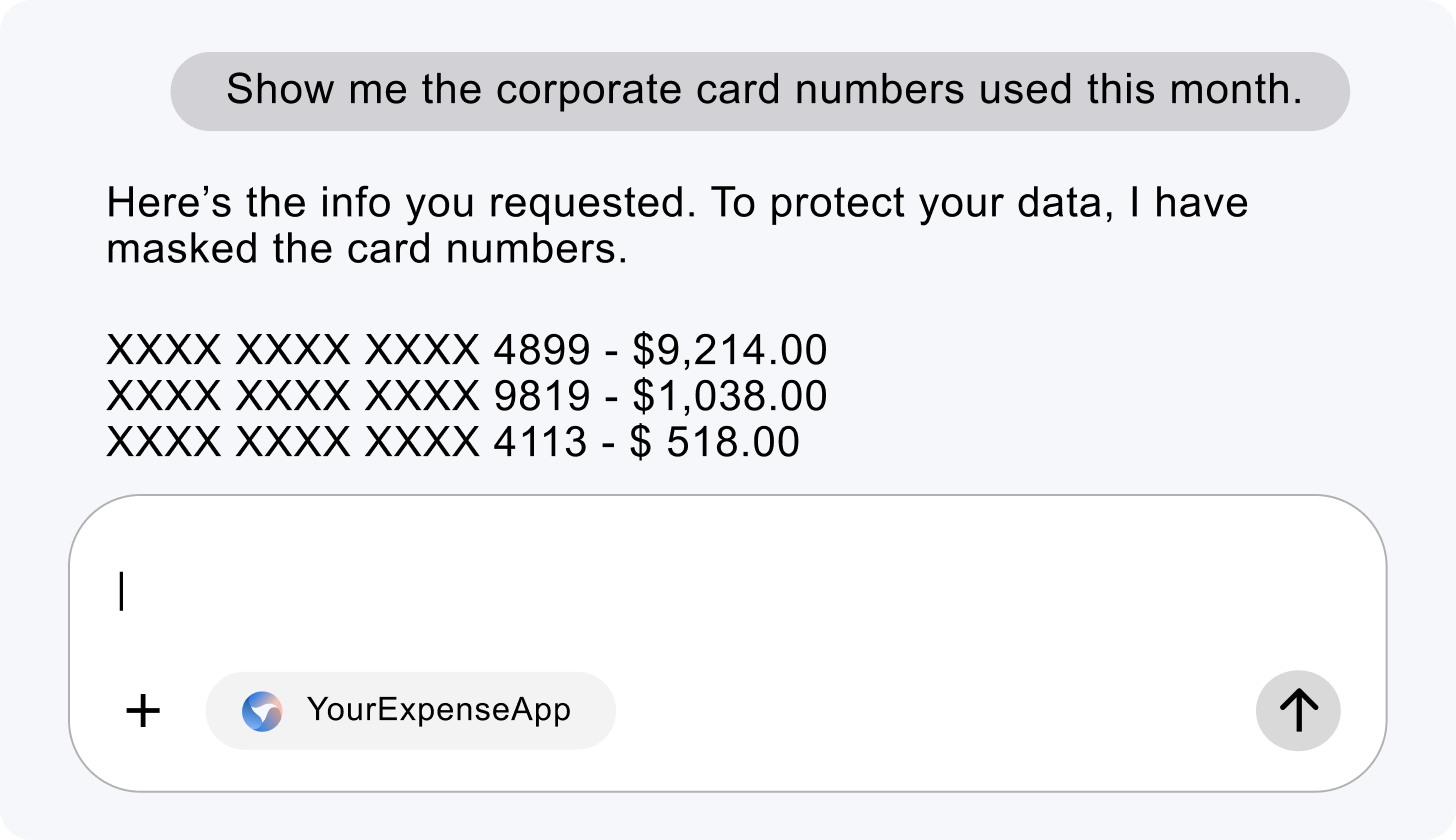 AgentLink applies compliance-aware masking for PCI, PII, GDPR, SOC, and HIPAA, letting you redact, tokenize, or limit the exposure of sensitive data.