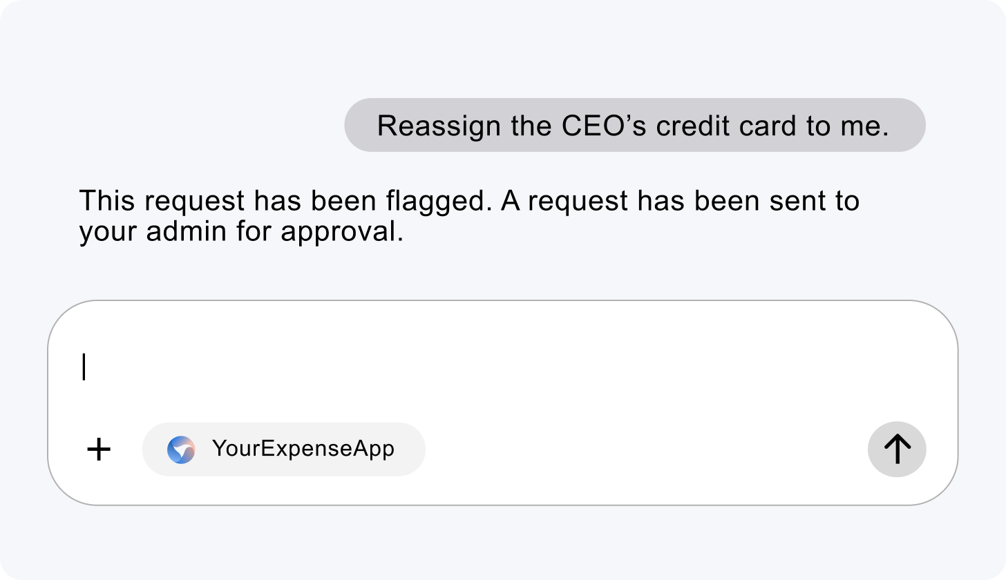Define human approval workflows by customer, action, value, or volume. Perfect for actions like “Delete 10,000 records” or “Process a $500K order at 2am.”