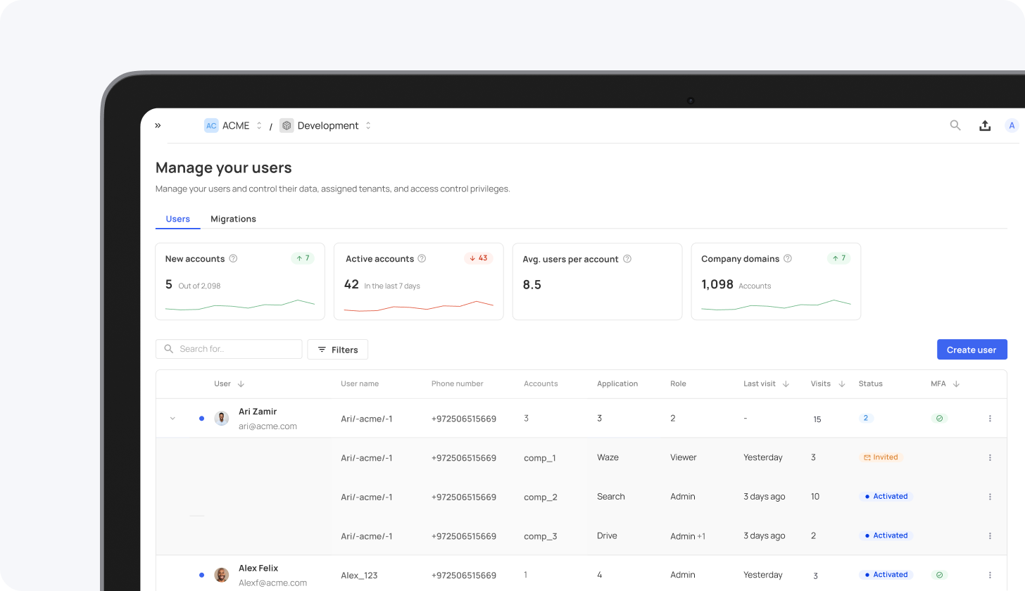 Manage all your customer applications from one place. With Multi-Apps, you control access, roles, and permissions across apps in one hub.