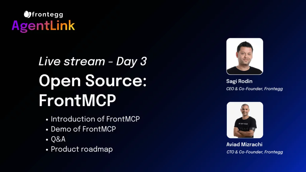 As AI platforms become real product interfaces, SaaS companies are under pressure to open up secure agent entry points without rewriting their stack. In this session, Frontegg CEO and Co-Founder Sagi Rodin shows how AgentLink lets you expose existing REST or GraphQL APIs to ChatGPT, Claude, and Gemini in minutes.